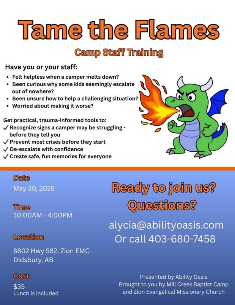 Tame the Flames About the Event Cost$35 LocationZion Evangelical Missionary Church, AB-582, Didsbury, AB Description of Training Event: